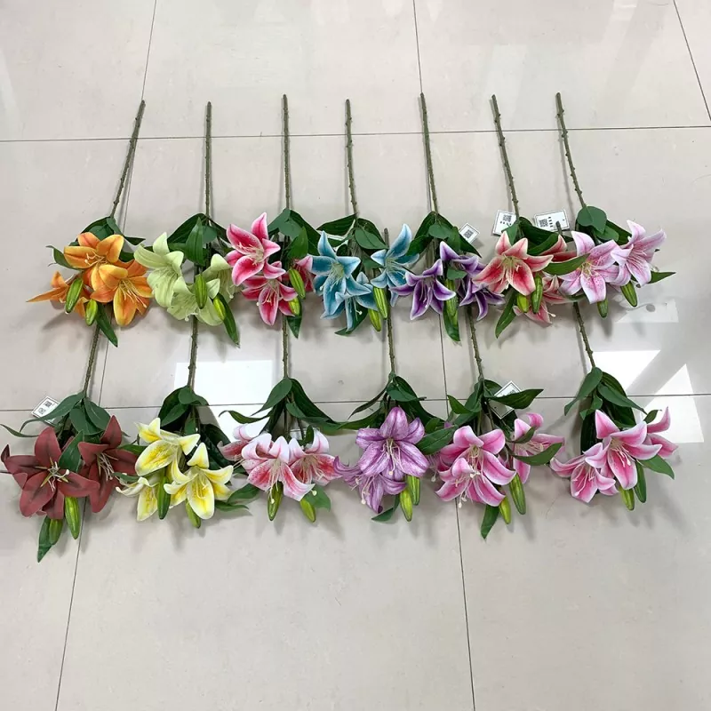 57cm 3 머리 인공 백합 꽃 꽃 가정과 웨딩 장식을위한 꽃